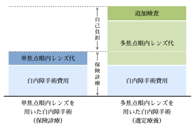 白内障手術自体は保険適用で受けられ、多焦点眼内レンズを選択する場合のみ、レンズ差額分を自己負担いただく形となります。