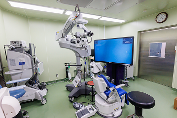 また、デジタル画像で輝度を上げ、モニターに投影できるため、眼への光刺激を抑えながら、術者とスタッフが協力して進められる環境を整えています。